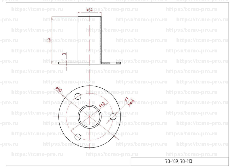 PR70-110 3-х анкерная закладная на 38.1 стойку
