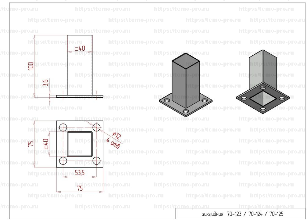 PR70-124 Закладная под трубу 40х40