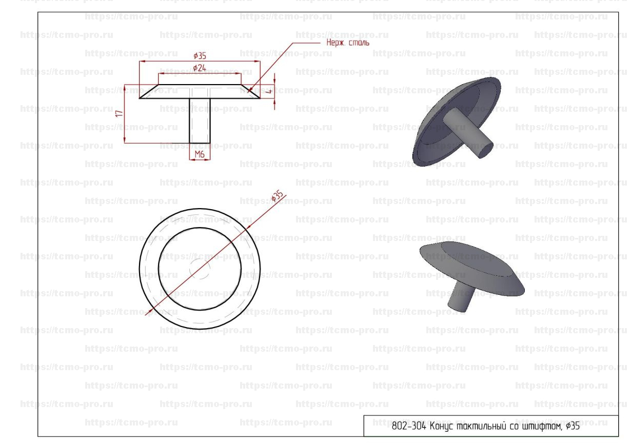 SND802-304 Тактильный индикатор конус со штифтом D35мм