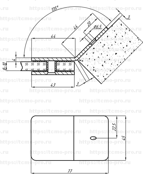 Коннектор для крепления неподвижного стекла душевой кабины к стена под углом 135º. Монтажная пластина позволяет закрепить стекло с минимальным зазором от поверхности. Изготовлен из нержавеющей стали,без покрытия.