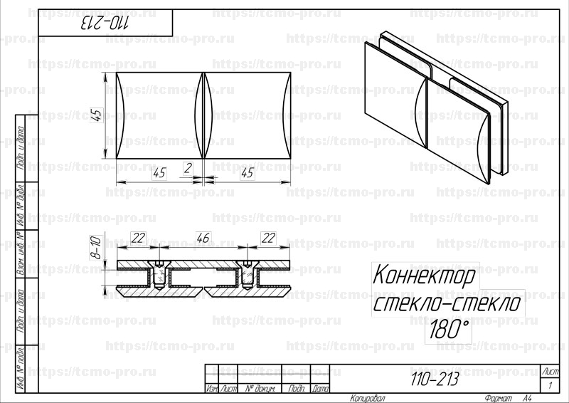 Коннектор предназначен для жёсткого соединения двух стеклянных перегородок душевой кабины друг с другом под развёрнутым углом. Коннектор изготовлен из цинкового сплава с качественным покрытием.