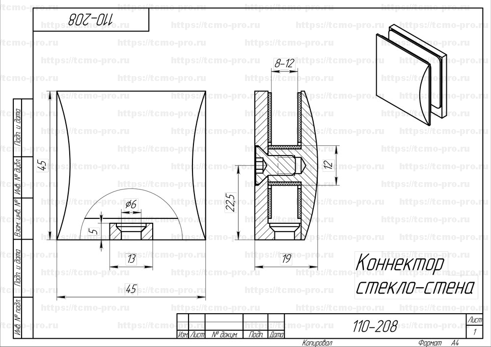 Коннектор для крепления стеклянной перегородки к стене под развёрнутым углом. Для крепления к стене используется одно отверстие. Изготовлен из цинкового сплава с качественным покрытием.