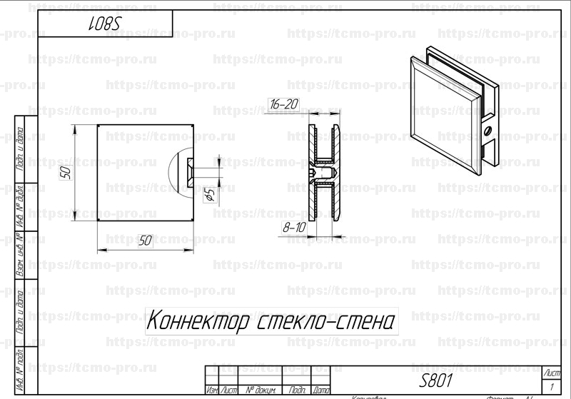 S801 коннектор стена-стекло 90º
