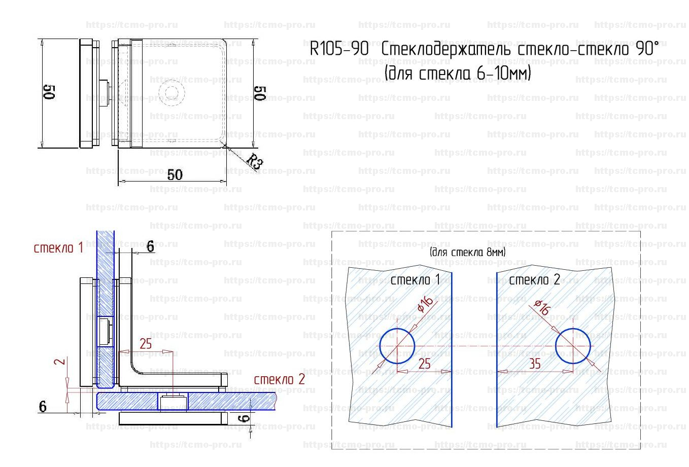 R105-90 Стеклодержатель стекло-стекло 90 гр
