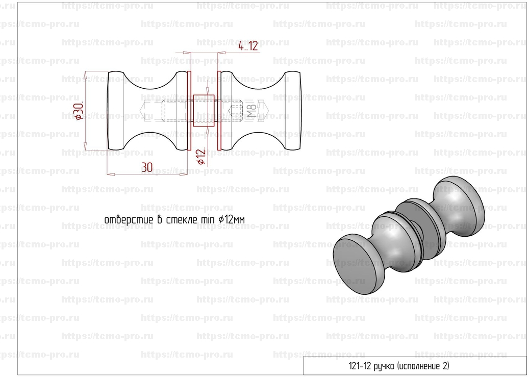 Ручка-кноб для двери душевой кабины. Диаметр отверстия - 8-12 мм.