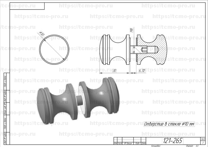 Ручка-кноб предназначена для стеклянных дверей толщиной 6-12 мм. Отверстие в стекле Ø8-12мм.