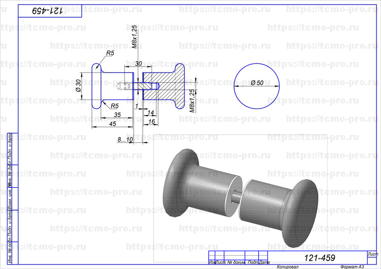 Увеличенная ручка Ø50 мм для стеклянных дверей толщиной 10-12 мм. Отверстие в стекле Ø10-12 мм.