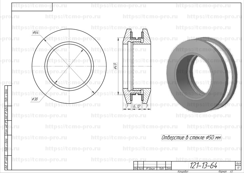Ручка-купе предназначена для межкомнатных раздвижных дверей. В стекле высверливается отверстие Ø50 мм. Внешний диаметр Ø64 мм.