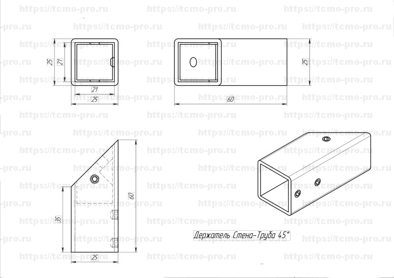 Коннектор предназначен для крепления трубы 19*19 к стене под углом 45º при монтаже штанг верхней обвязки душевых кабин из квадратной трубы.