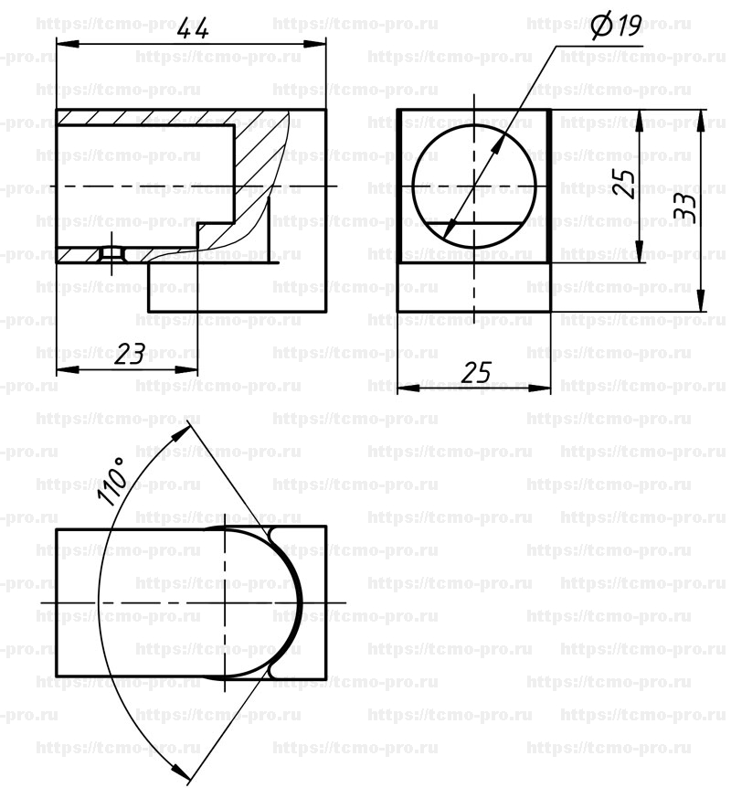 Коннектор предназначен для крепления труб Ø19 мм к стене под произвольным углом при монтаже верхней обвязки душевых кабин.