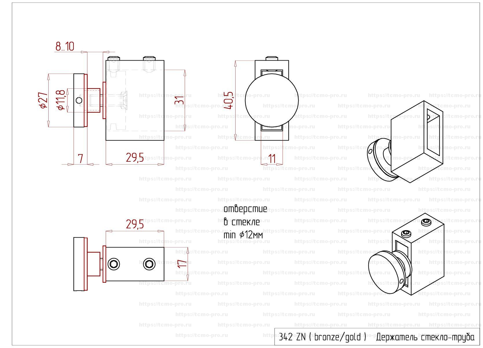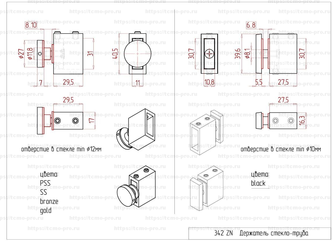 - Держатель поручня-стекла