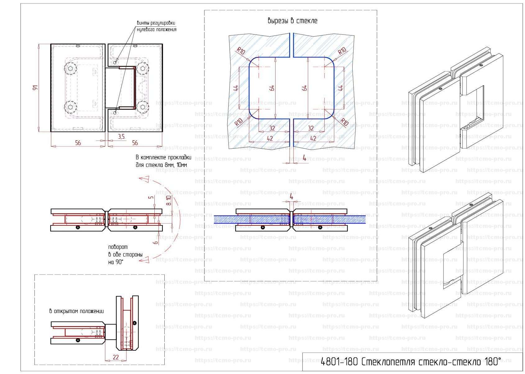 4801-180 Стеклопетля стекло-стекло 180гр с регулируемым углом