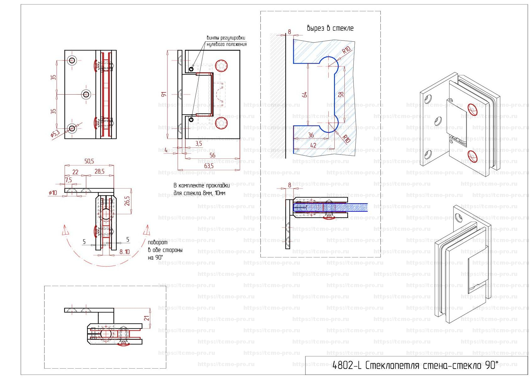 4802-L Стеклопетля стена-стекло с регулируемым углом