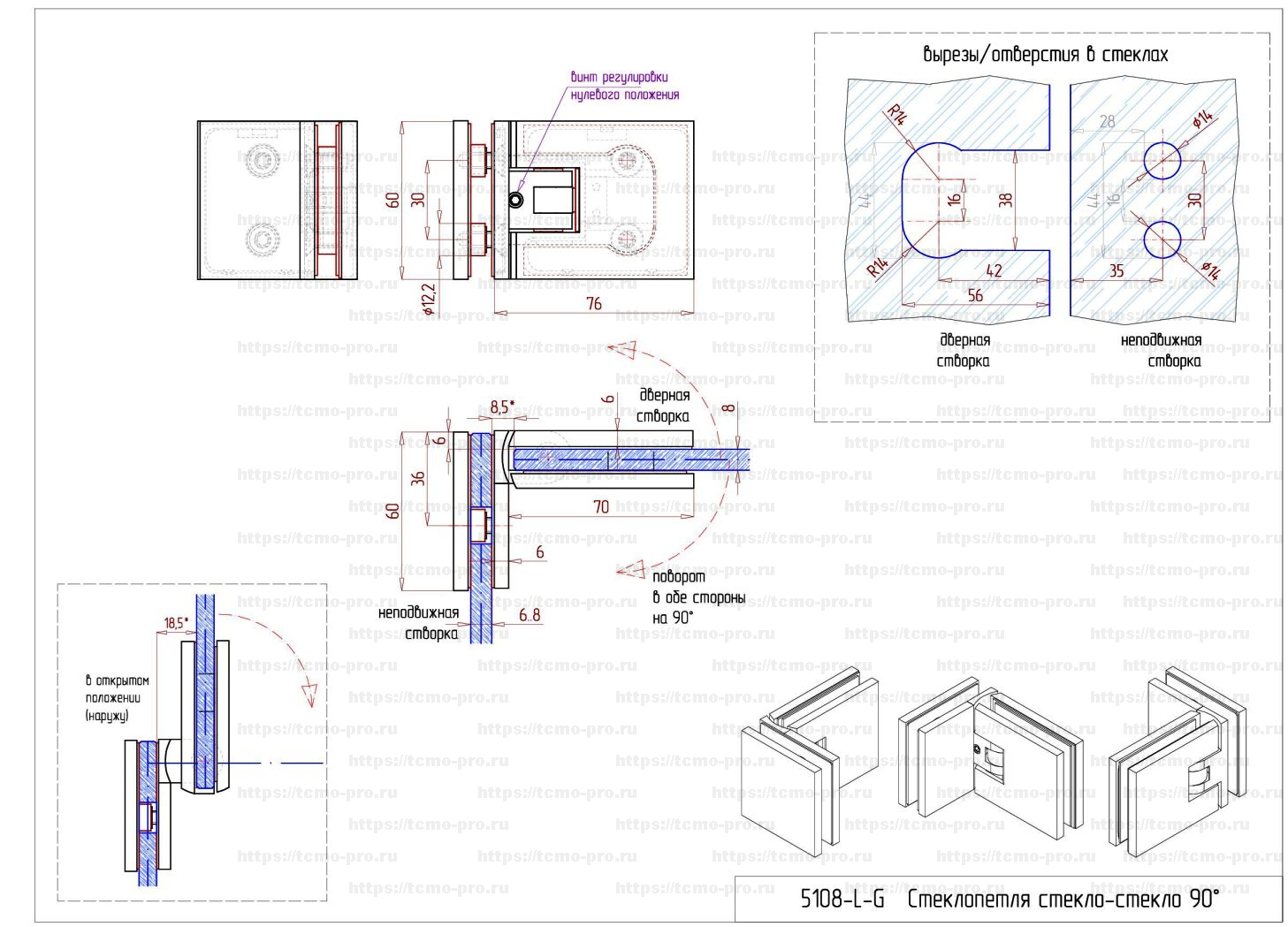 5108-L-G Стеклопетля стекло-стекло 90 градусов