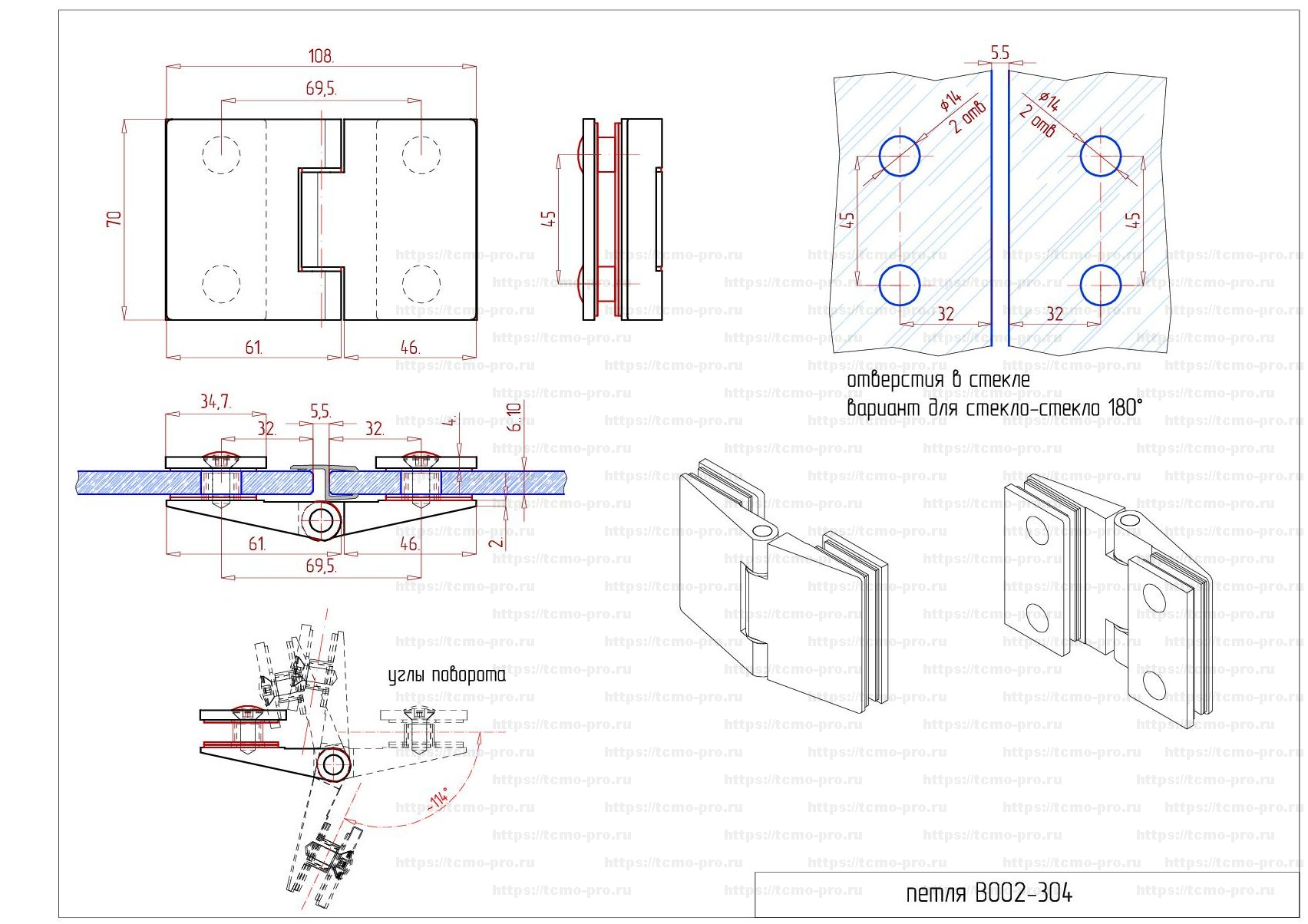 | Особенности | Без реза уплотнителя. Угол поворота 114º(см. чертеж) |