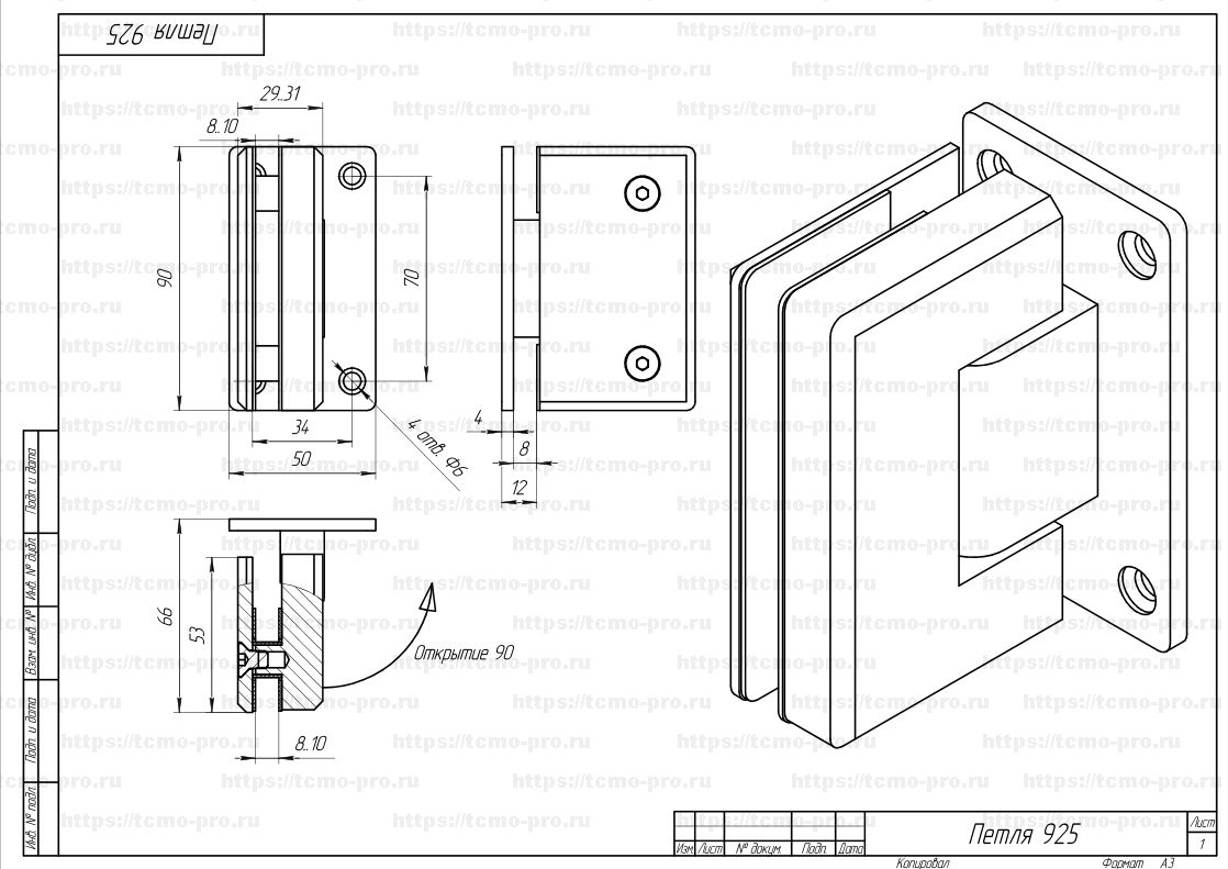 Петля предназначена для крепления стеклянной двери душевой кабины к стене под углом 90º. Крепится к стене с двух сторон. Обеспечивает поворот двери в одну сторону (наружу) на угол 90º с фиксацией. Не требует разреза в уплотнителях. Изделие выполнено из нержавеющей стали AISI 304 без покрытия.