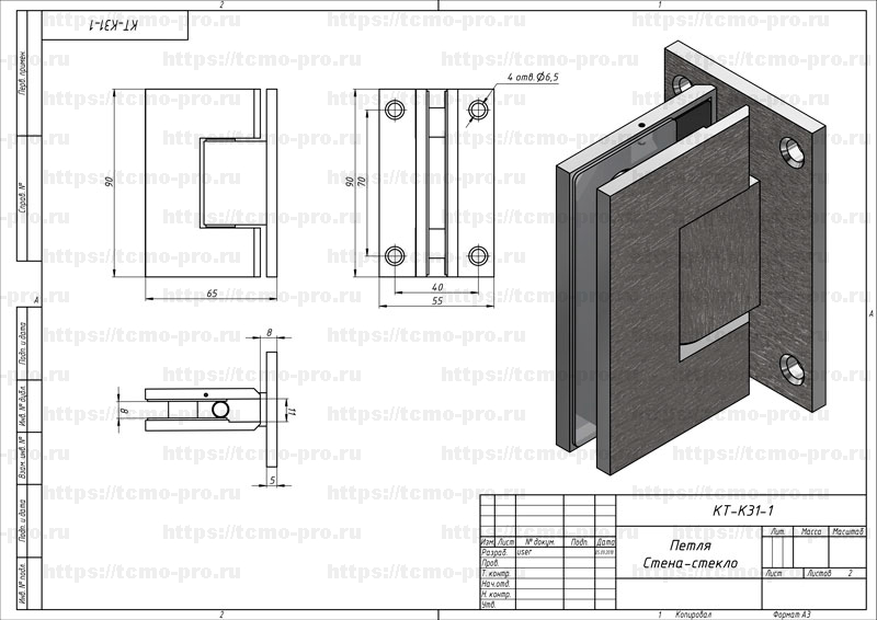 ПKT-K31-1 петля стена-стекло с регулировкой
