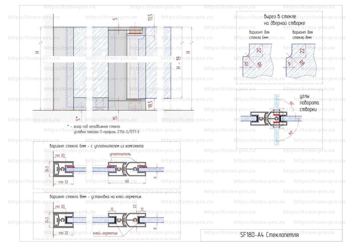 SF180-A4 Стеклопетля стекло-стекло 1500 мм стекло 6-8мм