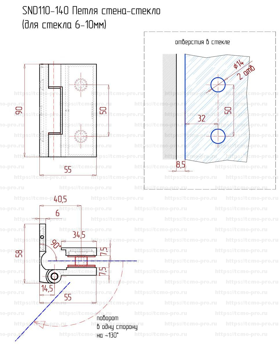 | Особенности | Угол поворота до 130° (см. чертеж) |