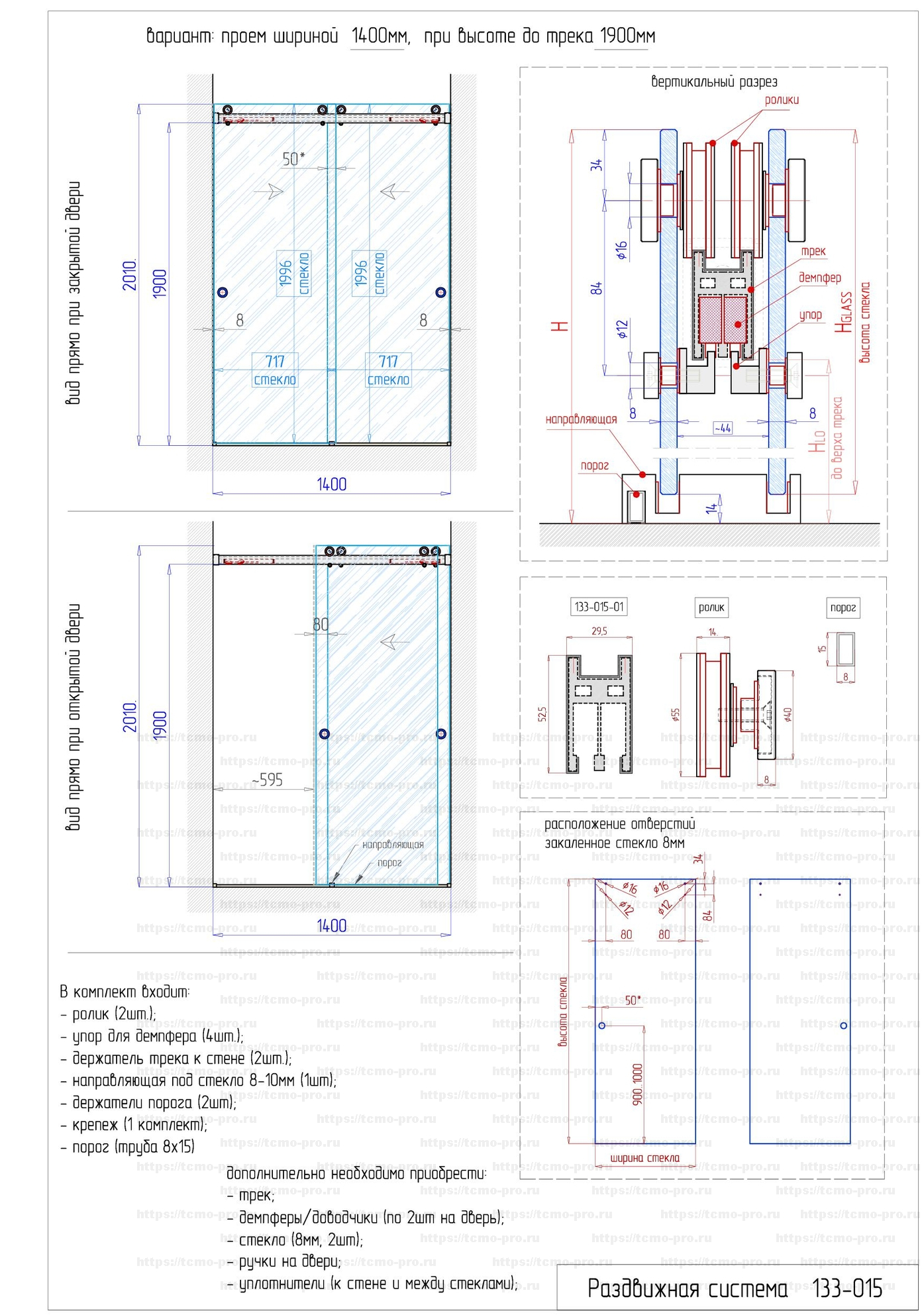 133-015 Раздвижная система для душевых кабин и стеклянных перегородок