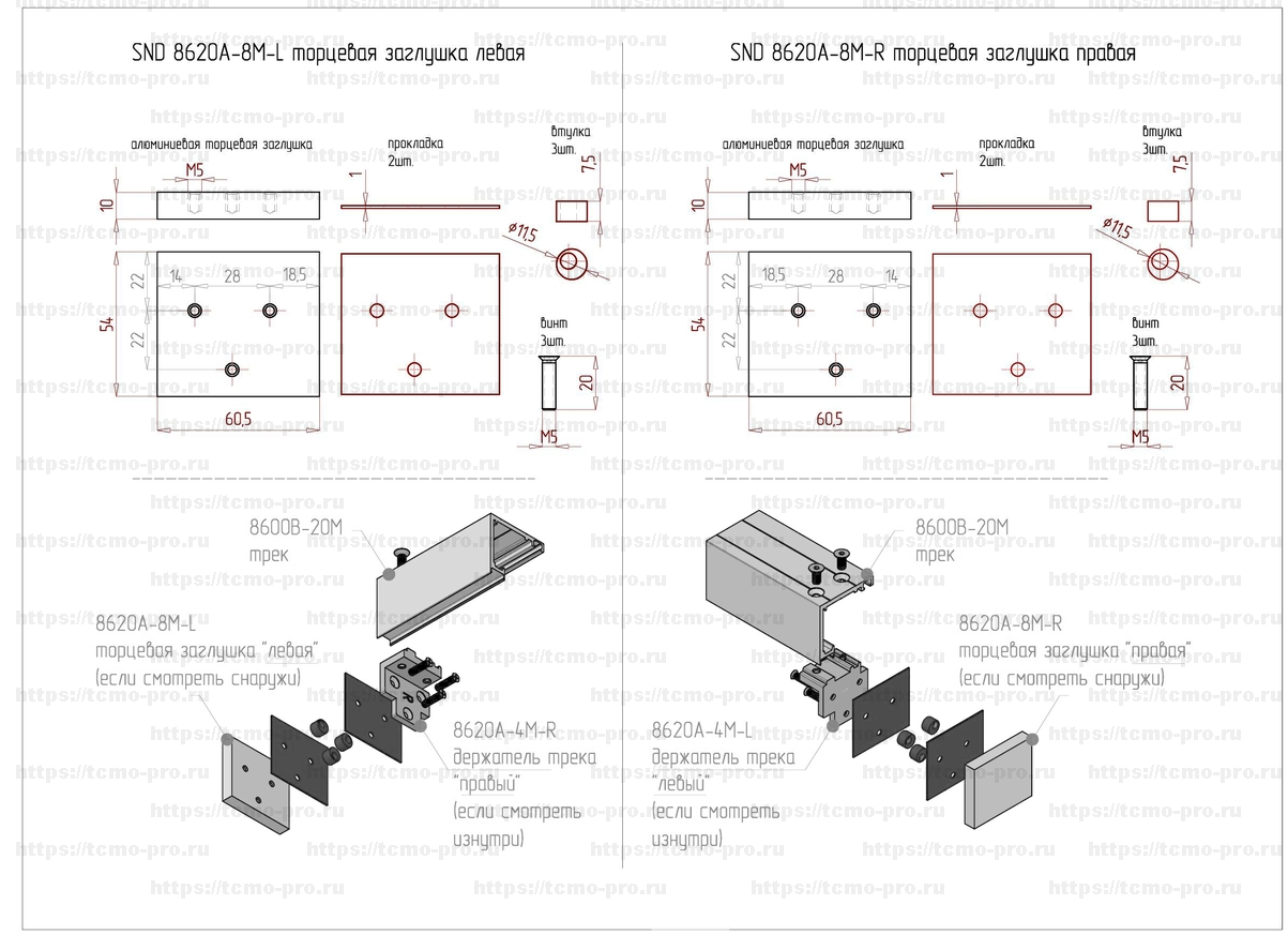 SND8620A-8M-R Стеклодержатель трек-стекло