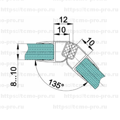 Профиль предназначен для уплотнения дверей душевых кабин, расположенных под углом 135º. Может устанавливаться так же под углом 180º. Рассчитан на стекло толщиной 8 мм. Длина профиля 2,2 метра.