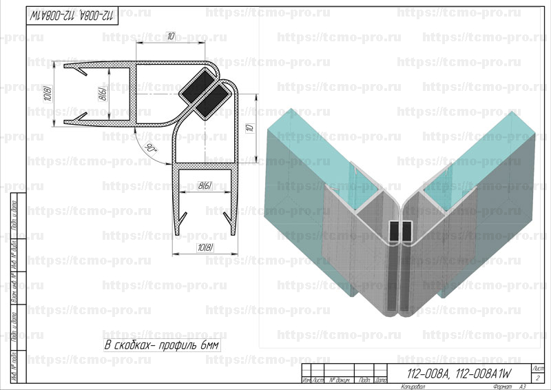 Магнитный профиль для стеклянных дверей, расположенных под углом 90º и 180º.