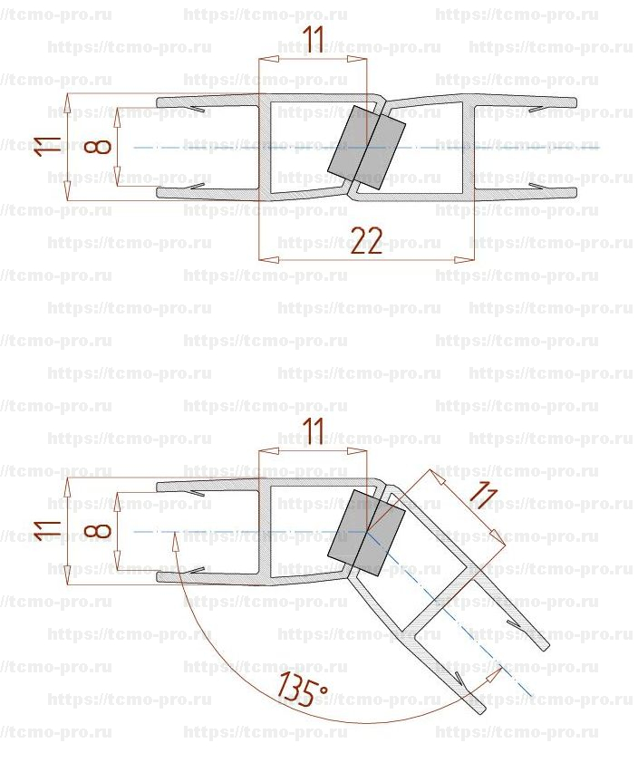 SN114-008CW-8 Профиль магнитный 8 mm 135 гр длина 2200мм