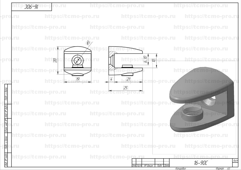 Полкодержатель для крепления стеклянных полок толщиной 6-10 мм. Держатель используется в производстве мебели из стекла и стеклянных витрин, устанавливается на боковые стенки витрин из ДСП, дерева и пр.