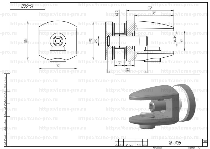 ПД16-90B-10 Полкодержатель через стекло 8-10мм