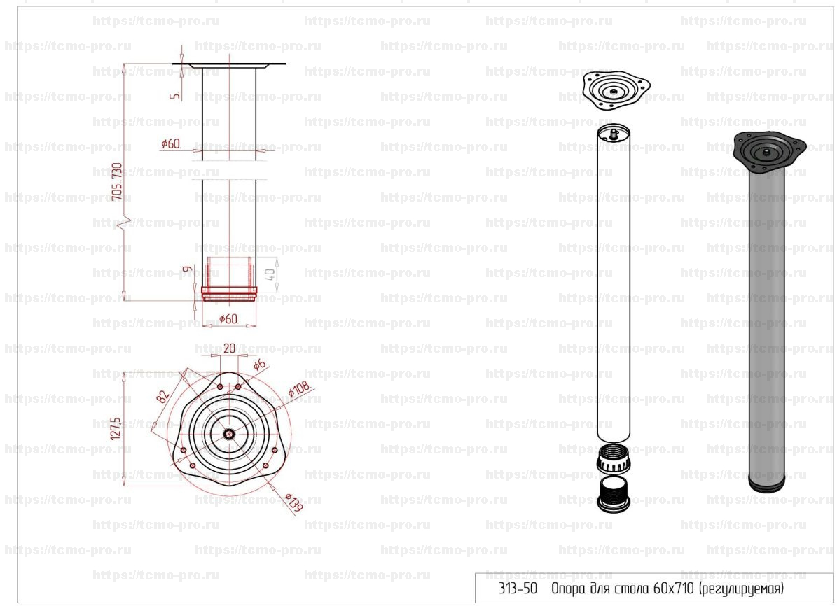 SND313-50 Опора ножка для стола регулируемая 60х710