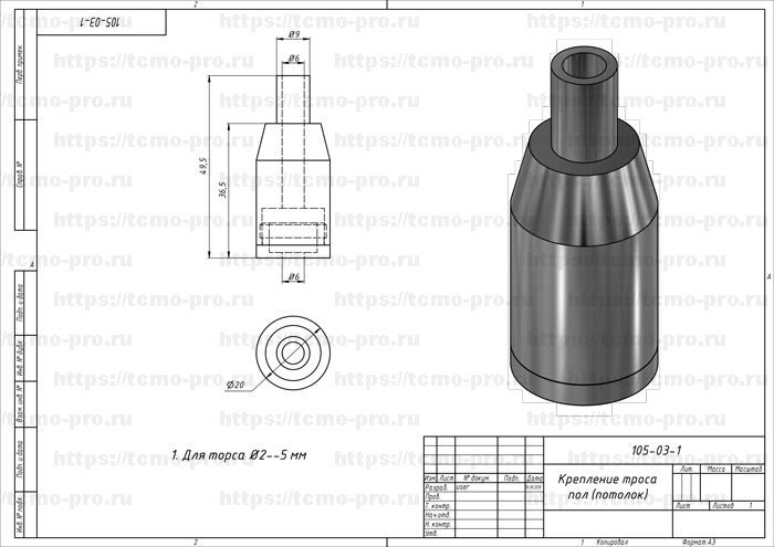 Крепление представляет собой цанговый зажим для троса Ø 2--5 мм, который прикручивается к площадке, закрепленной шурупом к полу ( потолку)