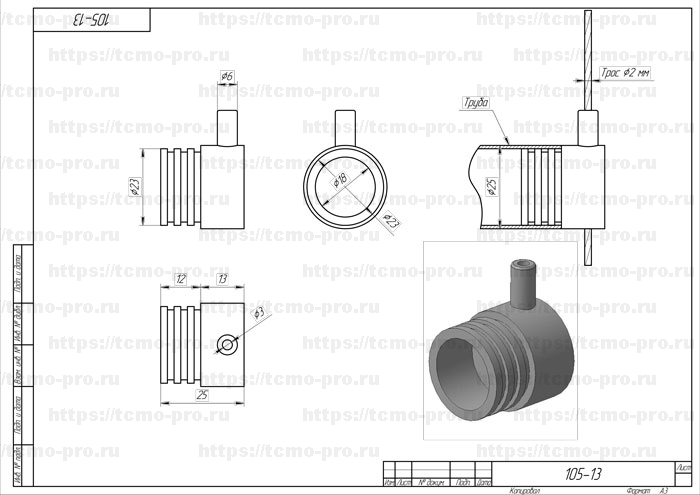 Держатель предназначен для крепления на тросе труб диаметром 25 мм в.