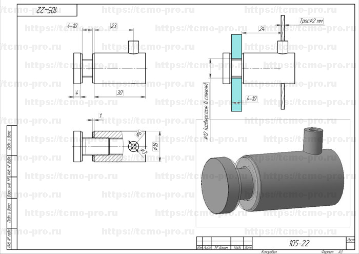 Аналог дистанционного держателя для крепления стекла на тросе Ø 2 мм . Цанговый зажим троса позволяет осуществлять регулировку положения стекла по высоте.