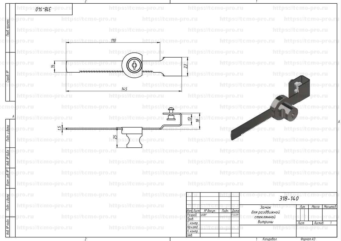 Замок крепится на одно стекло. Устанавливается без отверстий. Корпус замка надевается на зубчатую пластину и упирается в подвижное стекло.