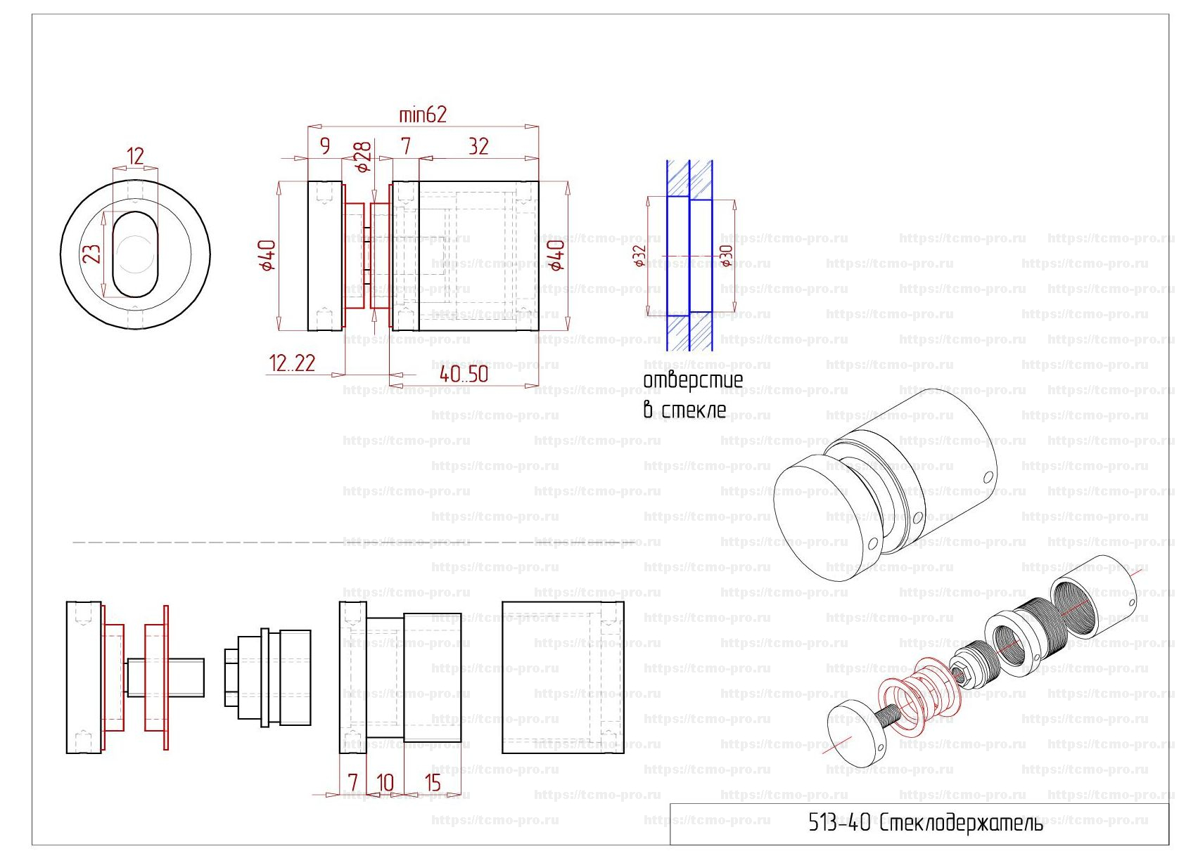 SN513-40 Стеклодержатель торцевой регулируемый 40мм