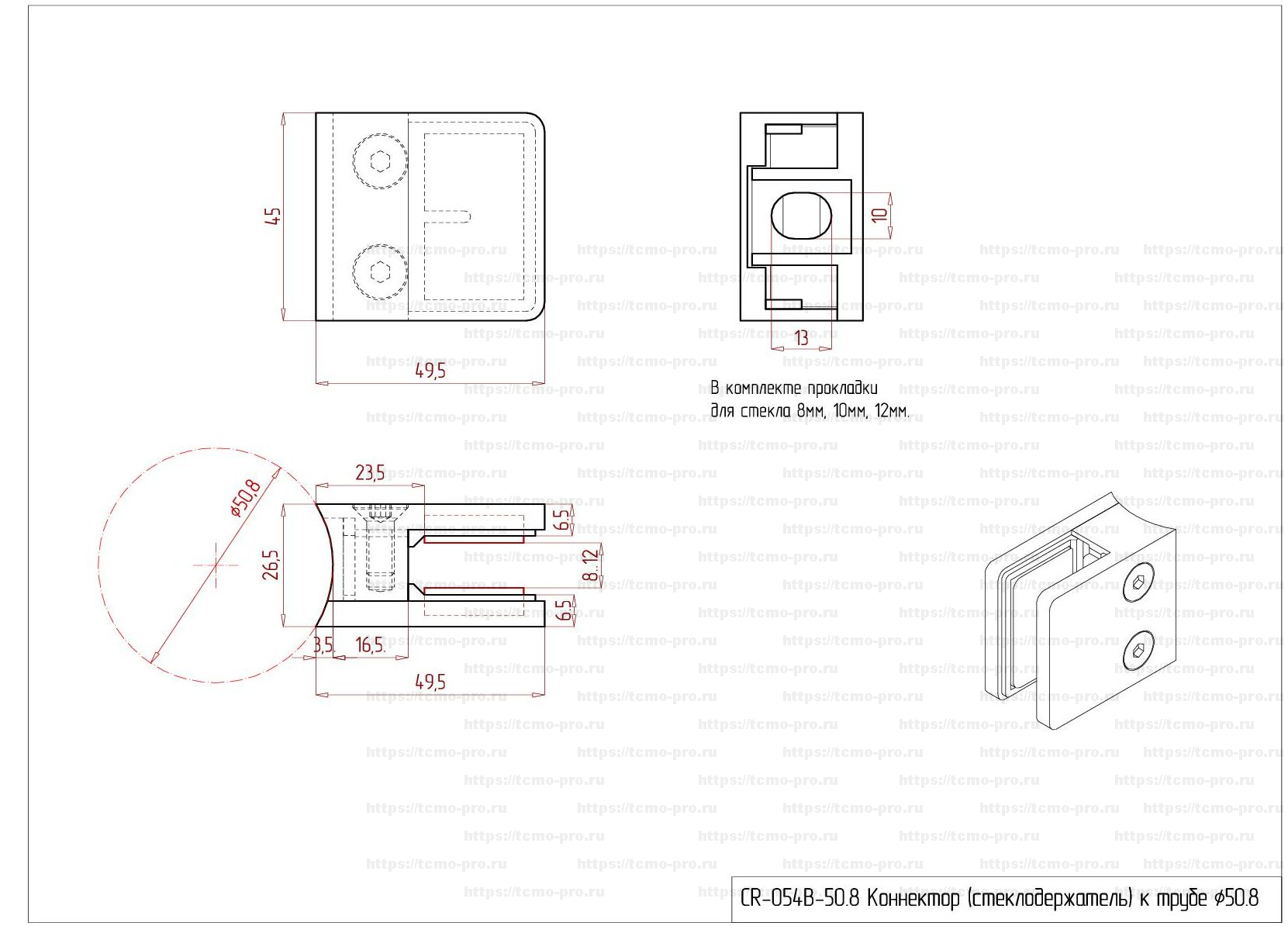 CR-054B-50.8 Коннектор(стеклодержатель) 50*45*27MM на трубу 50.8мм
