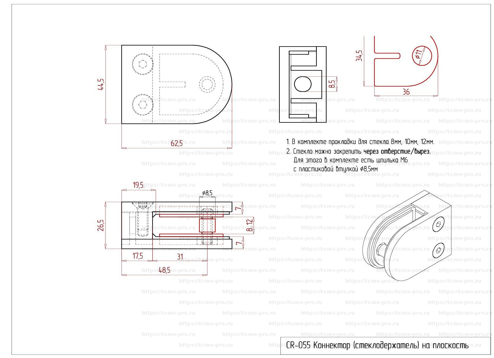 CR-055 Коннектор (стеклодержатель) на плоскость 63*45*27MM