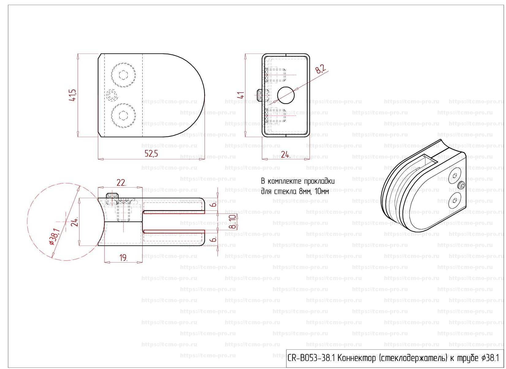 CR-B053-38.1 Коннектор (стеклодержатель)53*43*24MM на 38.1 трубу