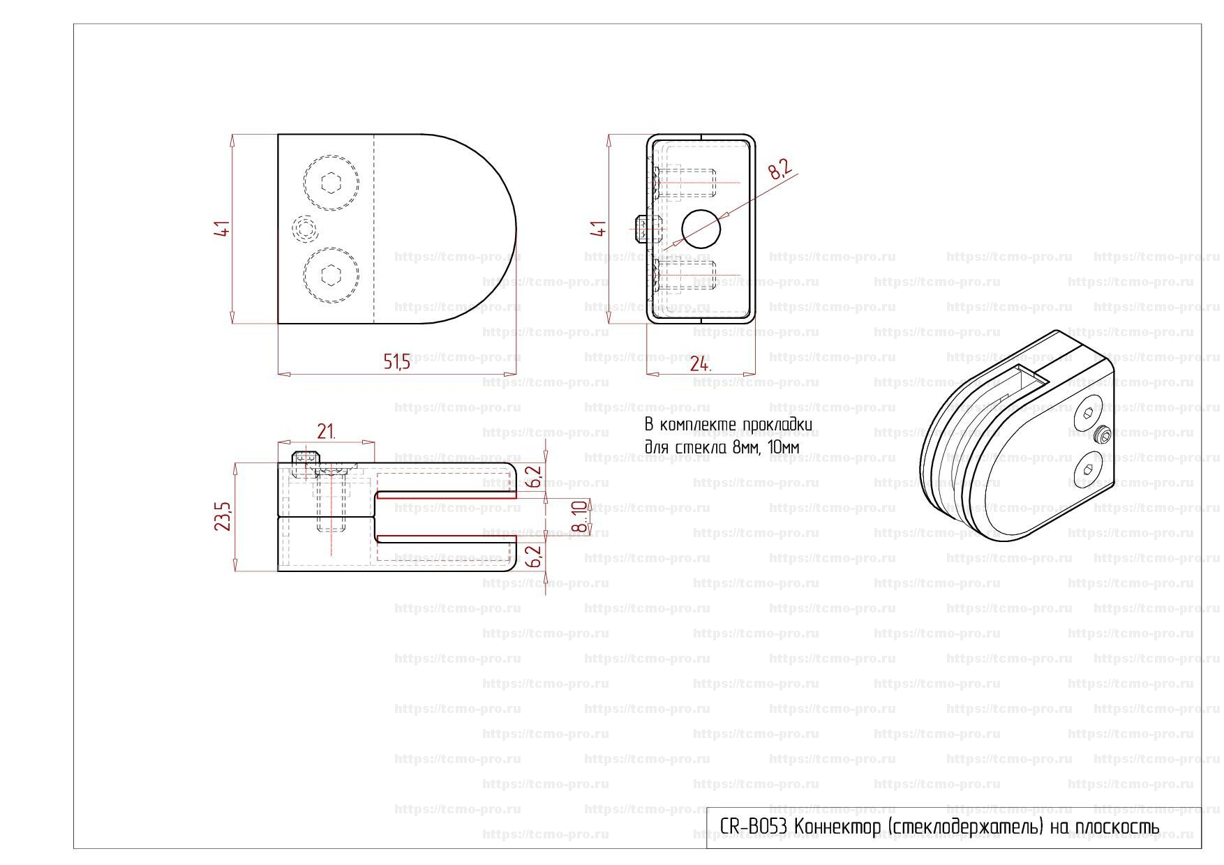 CR-B053 Коннектор (стеклодержатель):53*43*24MM на плоскость