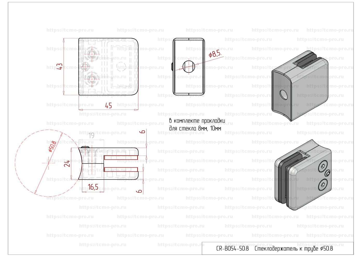 CR-B054-50.8 Стеклодержатель на стойку 50.8