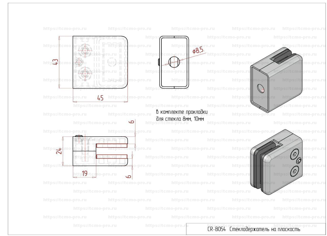 CR-B054 Коннектор(стеклодержатель) на плоскость 45*43*24MM