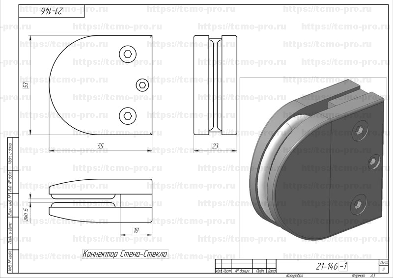 Коннектор позволяет закрепить стеклянную перегородку на стене без высверливания отверстий в стекле. Стекло размещается и удерживается между специальными прокладками, защищающими стекло от повреждений в местах соединения с коннектором.