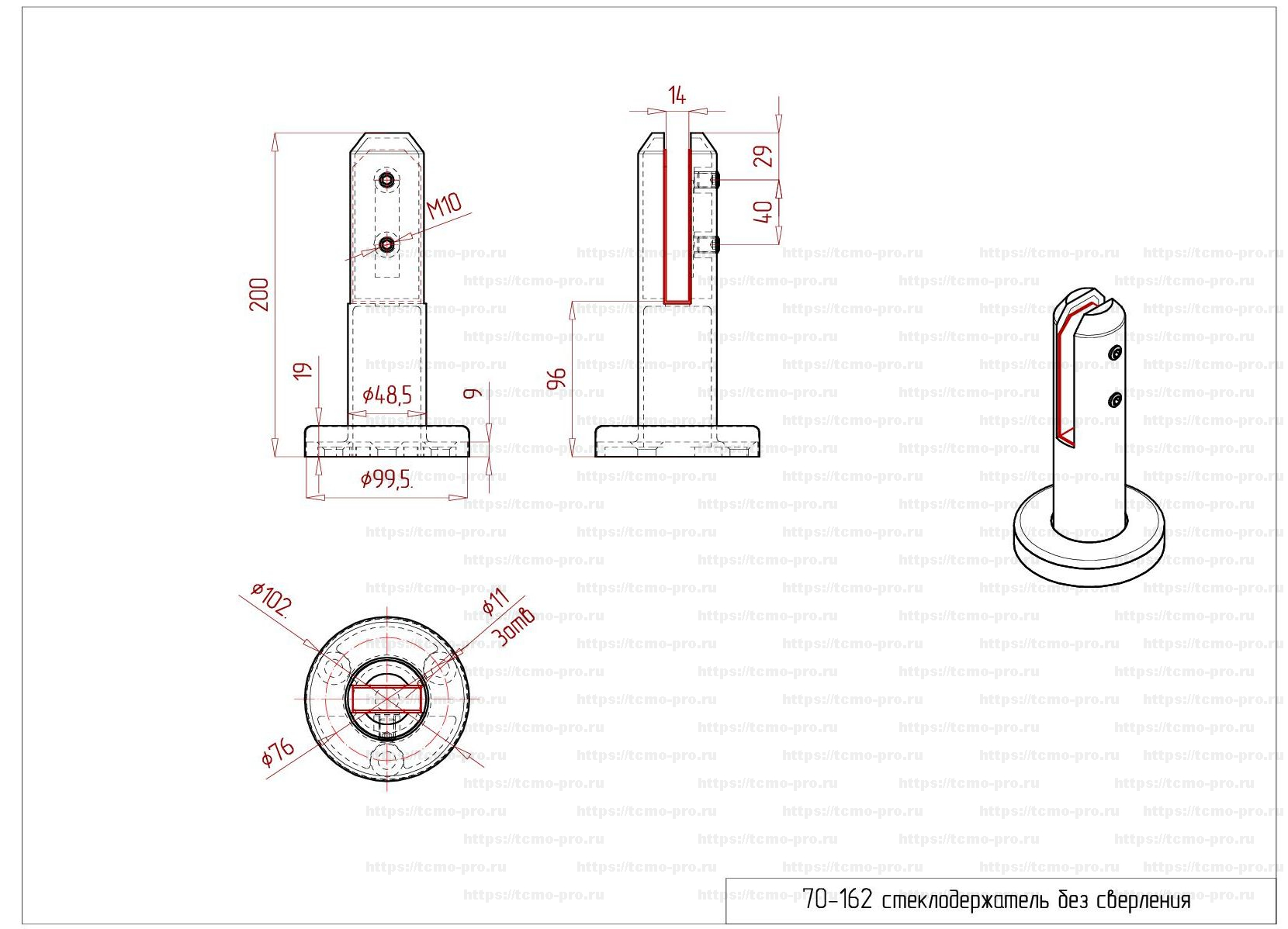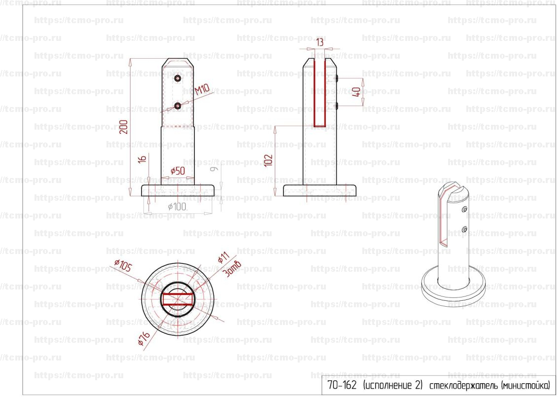 PR70-162 Стеклодержатель (министойка) без сверления 200мм