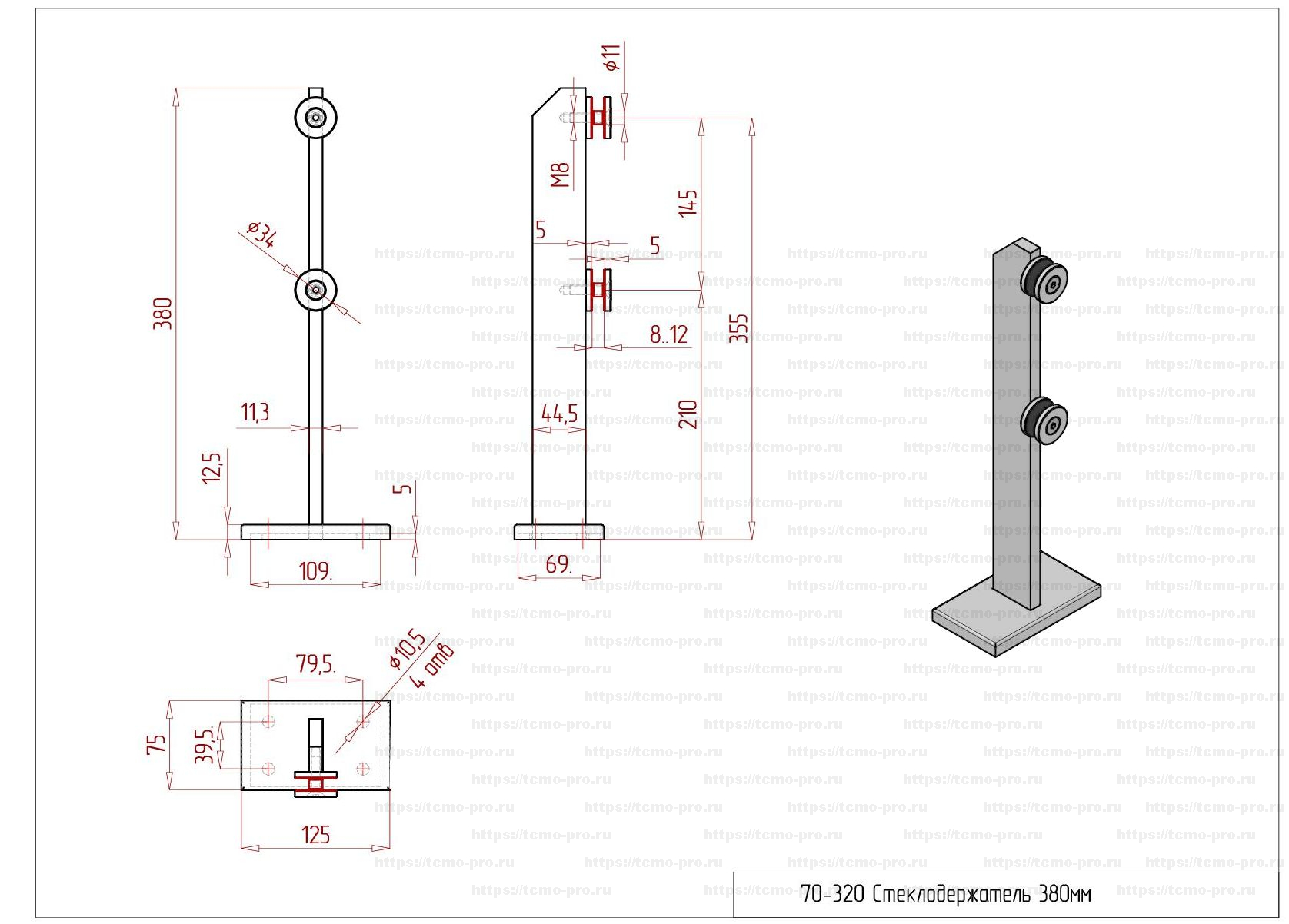SND70-320 Стеклодержатель (министойка) 380 мм