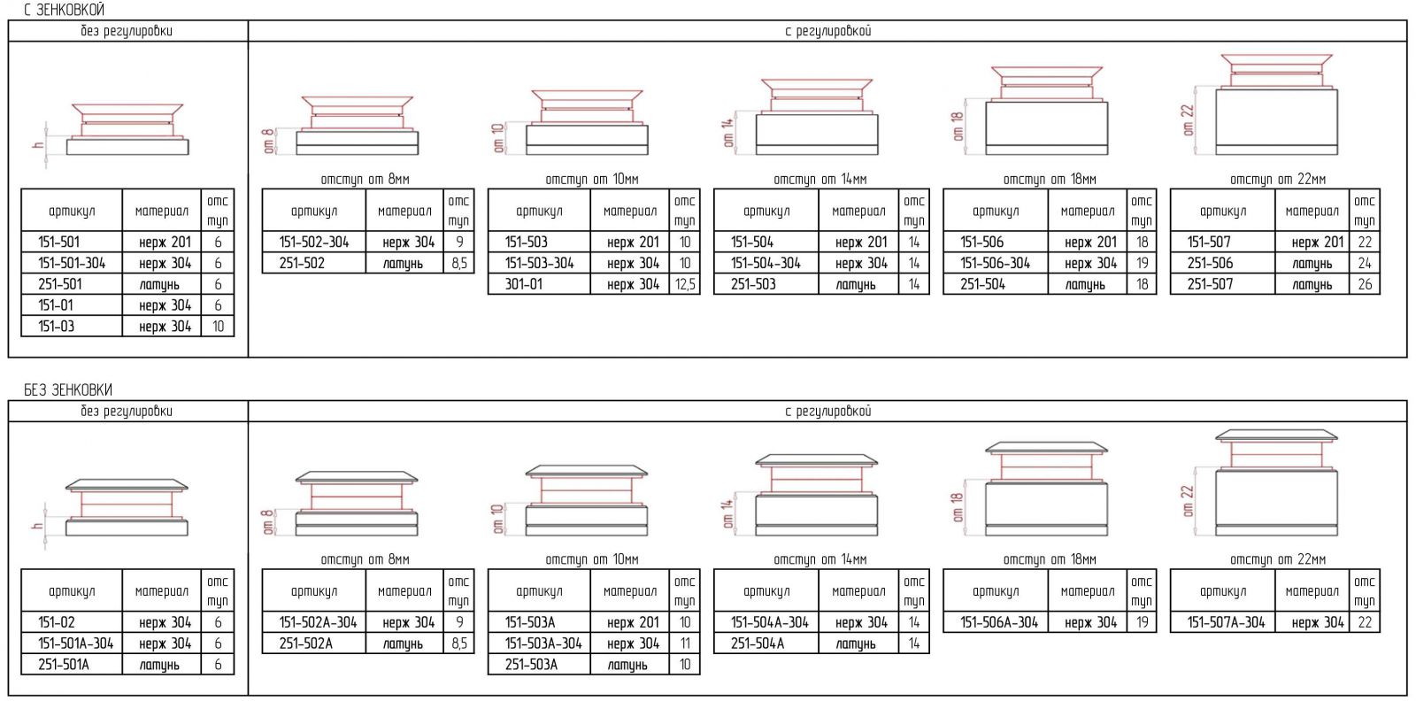 В изготовлении принято использовать нержавеющую сталь. Такой материал служит долго в любых условиях, включая агрессивные.
