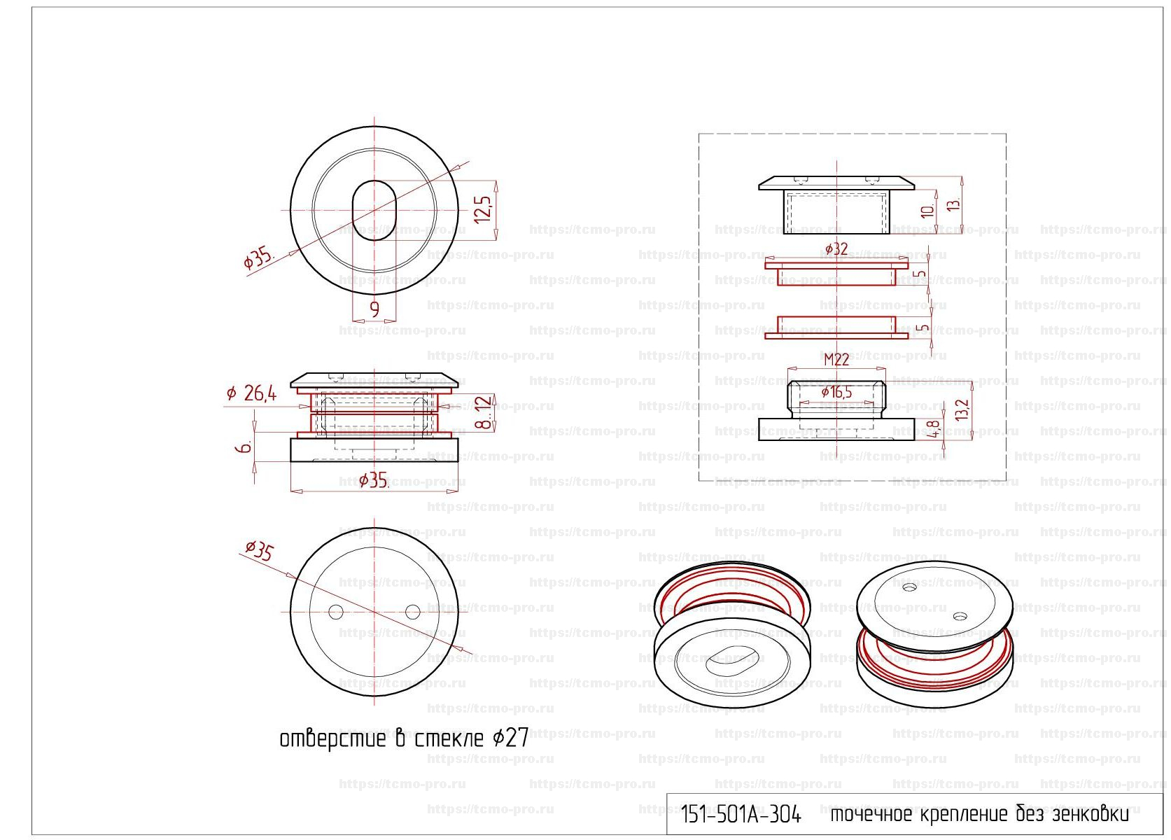 ТК151-501A-304 Точечное крепление