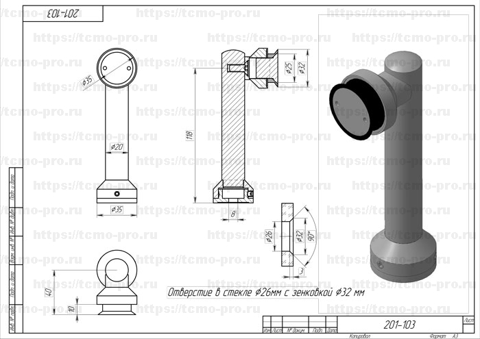 КТШ201-118 крепление стекло-пол/потолок 103 мм