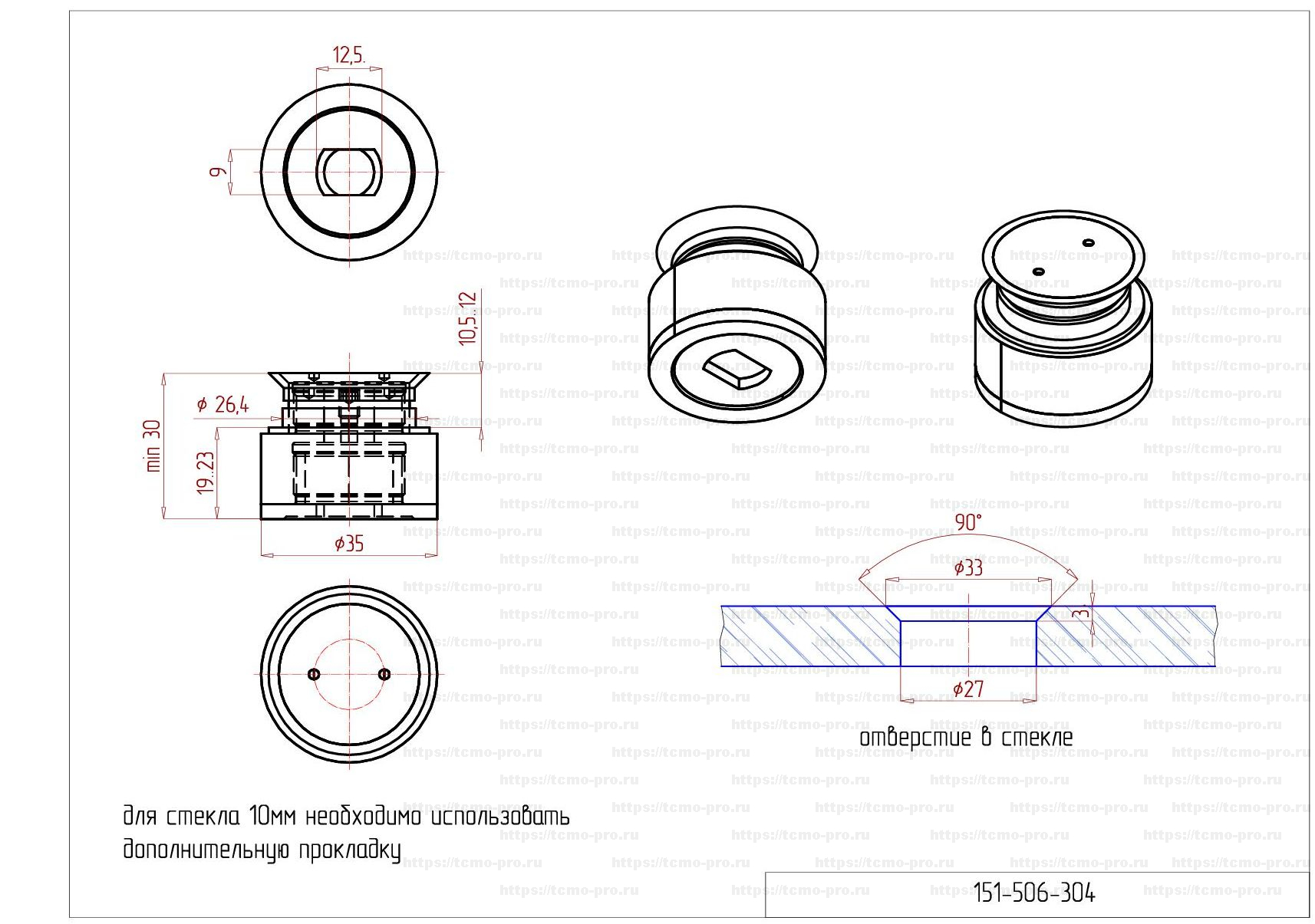 | Особенности | Для стекла 8мм надо использовать ТРИ прокладки 151-515(толщина старого образца прокладки = 1.2мм) |