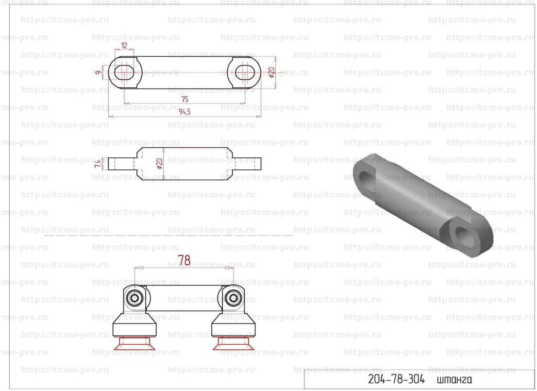 SND204-78-304 Штанга под стеклодержатель 78мм